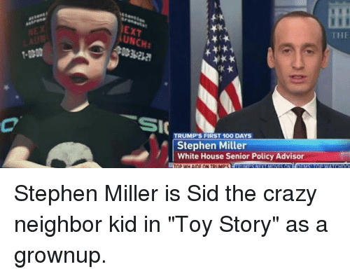 “Stephen Miller, policy adviser and Vitamin D-deficient minion. It is genuinely hard to find a photo of him not looking like a minion.”