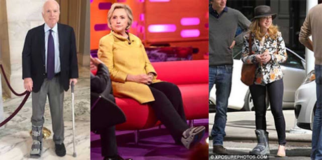 A couple months ago, we reported that John McCain and Hillary Clinton were likely wearing surgical boots to hide ankle monitors. A famously corrupt California Congresswoman is now also wearing one and Huma Abedin has started wearing 70s style bell bottom jeans to hide her ankle monitor (see picture).